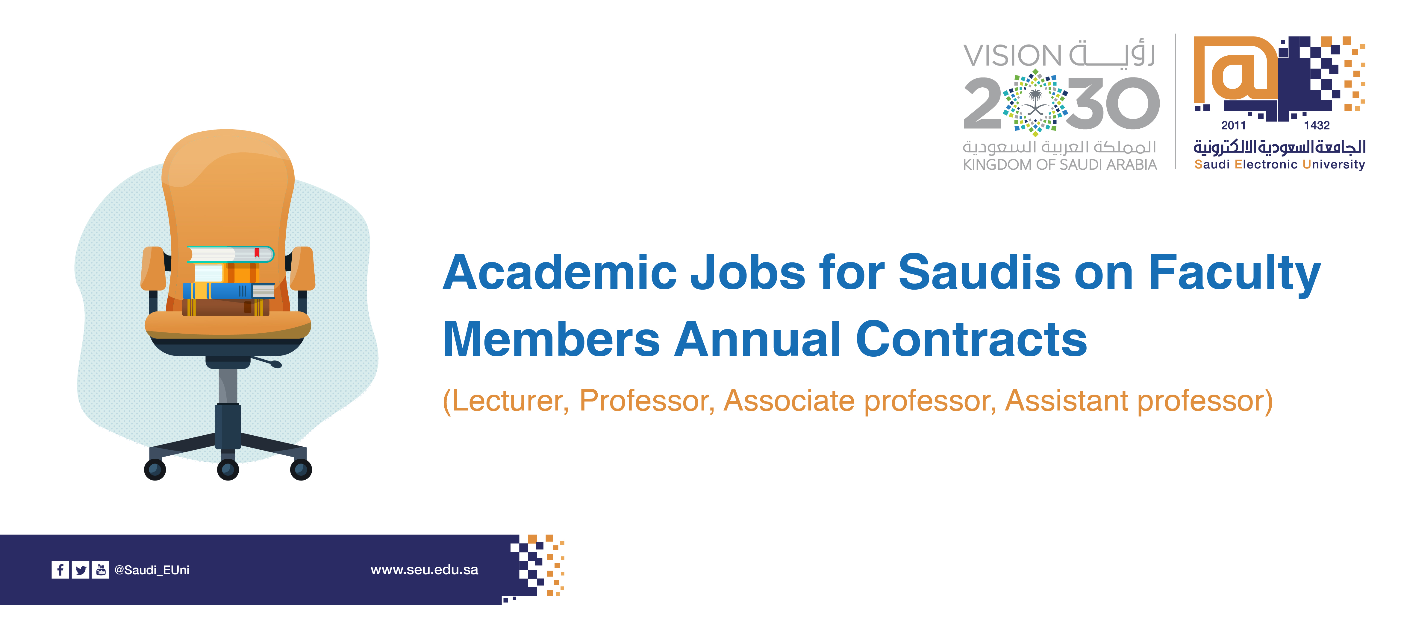 The Saudi Electronic University announces: The availability for jobs on Faculty Members annual contracts for Saudis (Lecturer, Professor, Associate professor, Assistant professor), at the different branches and colleges of the University under the following conditions: