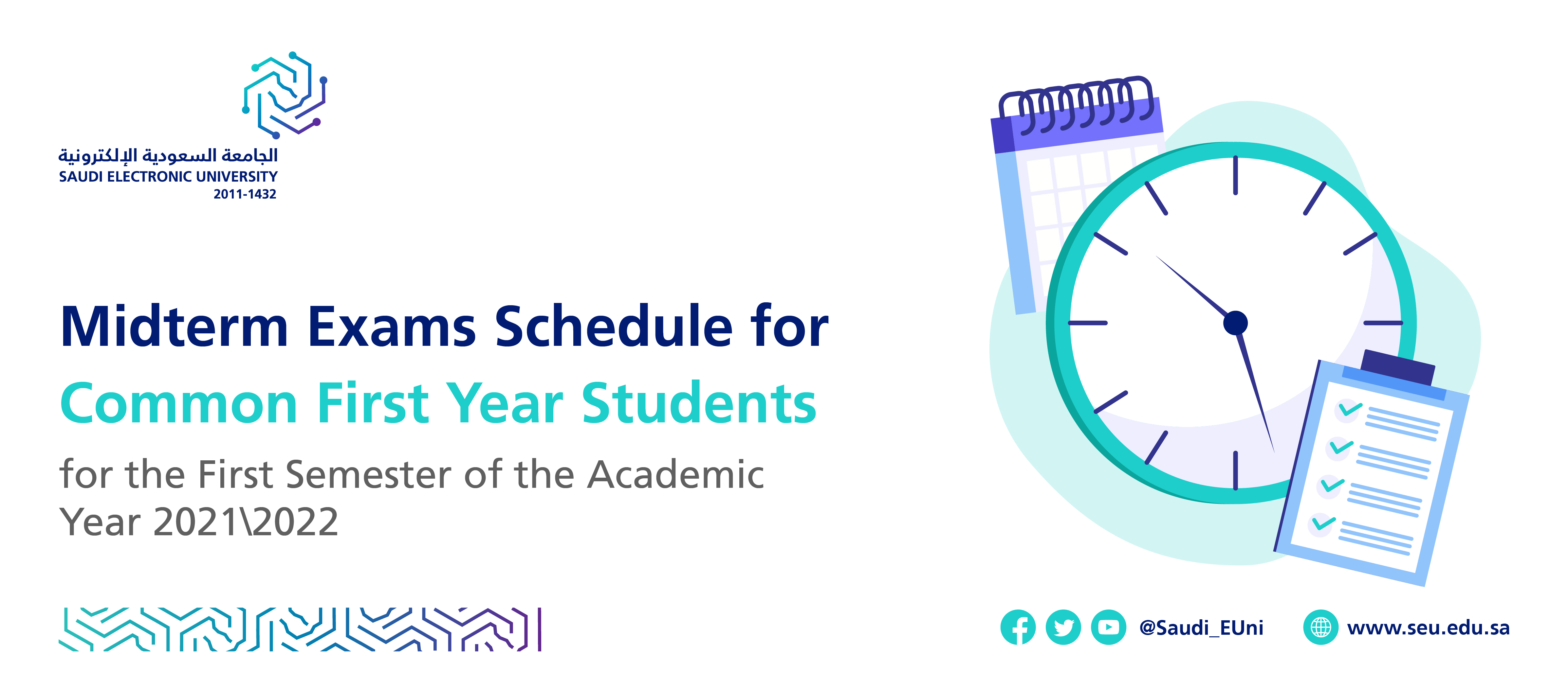 The Deanship of First Common Year is pleased to announce to its students the midterm exam schedule for the First semester of the academic year 1443AH The schedule is unified across all university Branches for both male and female sections. The exams will be conducted online using the secure browser (SUMADI) & Blackboard and AI proctoring.