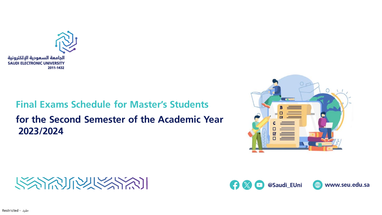 The Deanship of Graduate Studies announces the schedule of the final exams for Master’s students for the second semester of the academic year 2023