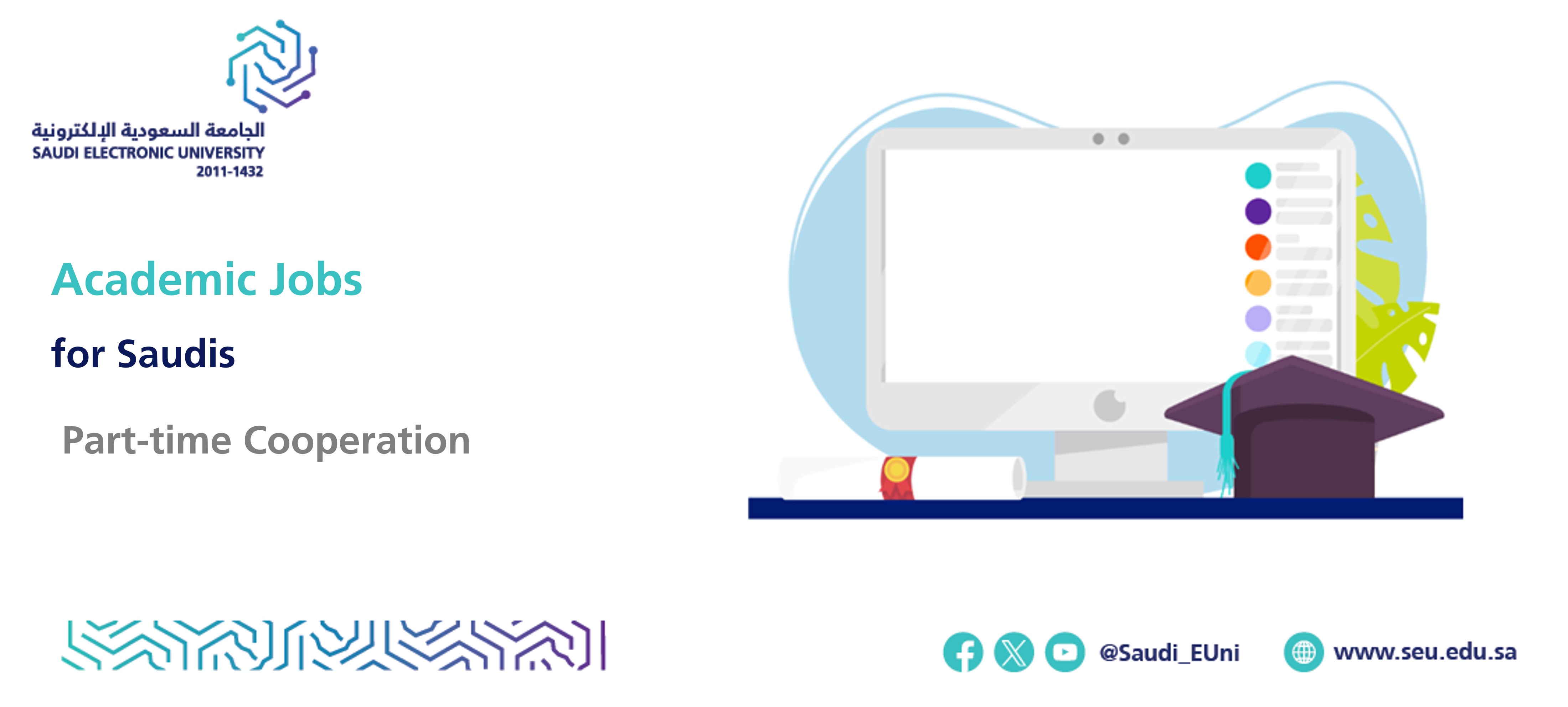 The Saudi Electronic University announces the availability of part-time academic job opportunities for Saudi citizens who hold a Master's or PhD degree. These opportunities are available in different fields at the university’s colleges and educational centers across the Kingdom, in the following majors: