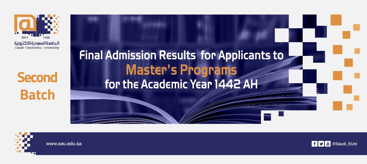 The Deanship of Graduate Studies is announce the second batch of final admission results for applicants to Master's programs for the academic year 1442 AH.
