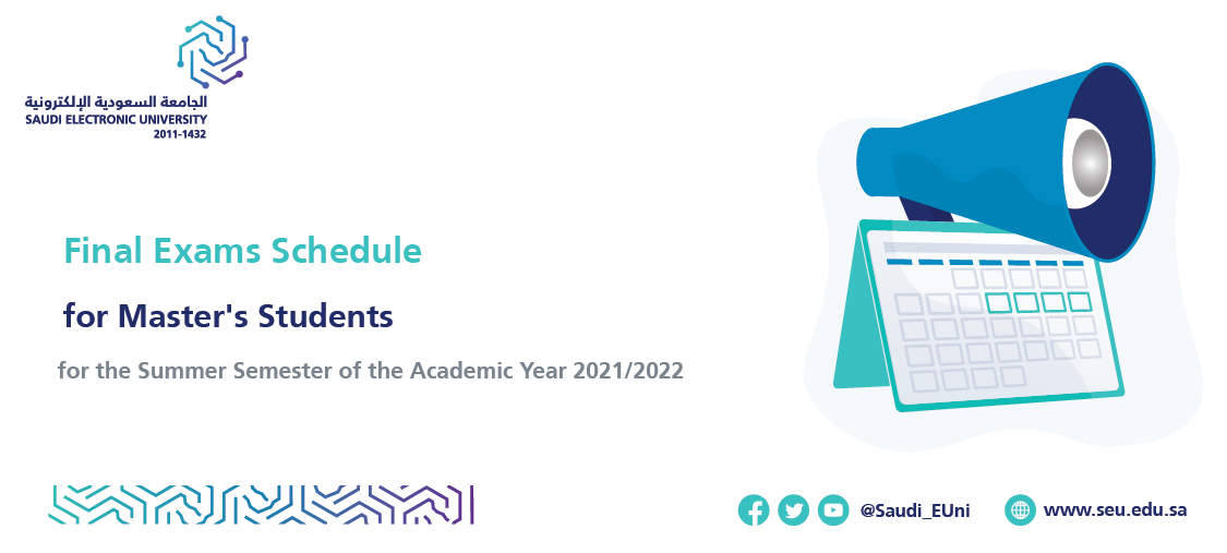 The Deanship of Graduate Studies announces the schedule of Final exams for master’s students for the Summer semester of the academic year 2021/2022