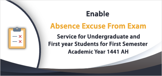 The Deanship of Admissions and Student Affairs is pleased to announce the requests for submitting letter of absence from midterm exams for undergraduate and first year students via student services for the first semester of academic year 1441 AH.