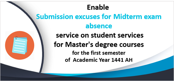 The Deanship of Graduate Studies announces the service ofsubmission of midterm exam absence excuse via students services