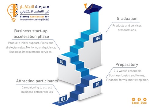 The Saudi Electronic University is distinguished in providing high-quality, distinctive programs by adopting the modern learning model for all society segments by implementing the latest technologies in E-Learning. This success was achieved by establishing strategic partnerships with many international universities and institutions specialized in educational technology. Therefore, the University has become a house of expertise and a provider of the latest educational technologies in the Kingdom. Given the continuation of this success and the fulfillment of the Kingdom's vision 2030 by supporting local educational institutions to keep pace with global changes towards e-learning, the University has launched a training course "Startup Accelerator for Innovation in eLearning" (SAIEL). It seeks to explore University students' capabilities to find innovative technological solutions in E-Learning that can be incubated, developed, and invested in making it a product that serves local education institutions. Students are considered an essential source for providing innovative solutions in e-education since they have firsthand experience with E-Learning and its' challenges.