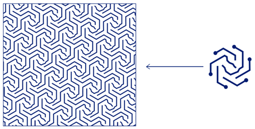 - Zigzag semicircles: indicate the connection between types of knowledge and incorporating it into a neural technical chain, similar to the nerve endings in the human body.