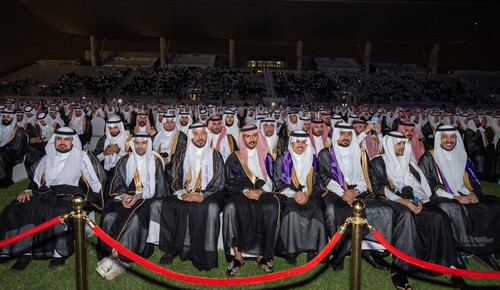رعى صاحب السمو الملكي الأمير فيصل بن بندر بن عبدالعزيز أمير منطقة الرياض، حفل تخرج طلاب الجامعة السعودية الإلكترونية لمراحل الماجستير والبكالوريوس والدبلوم للعامين الدراسيين 1444- 1445هـ، وذلك في استاد جامعة الأميرة نورة بنت عبدالرحمن.