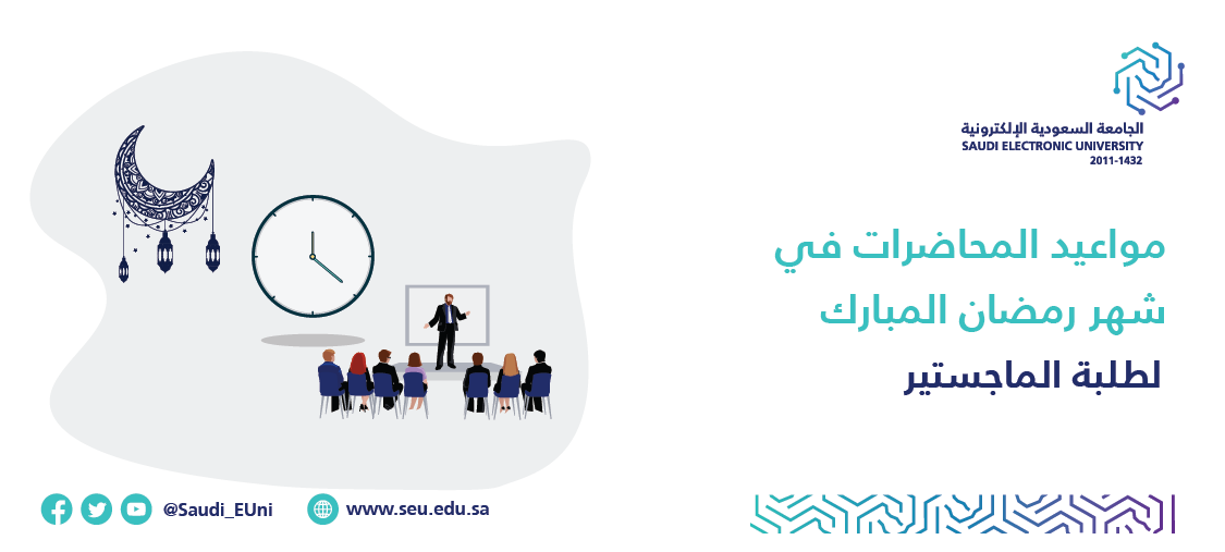 نظرًا لتزامن الدراسة في الفصل الدراسي الثاني من هذا العام مع شهر رمضان المبارك، لذا سيتم تعديل أوقات المحاضرات