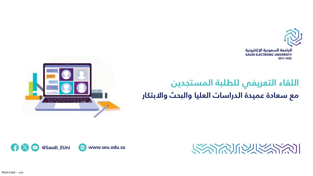 يسر عمادة الدراسات العليا و البحث والابتكار دعوة طلبتها المستجدين لحضور اللقاء التعريفي للفصل الدراسي الأول من العام الجامعي 1446هـ