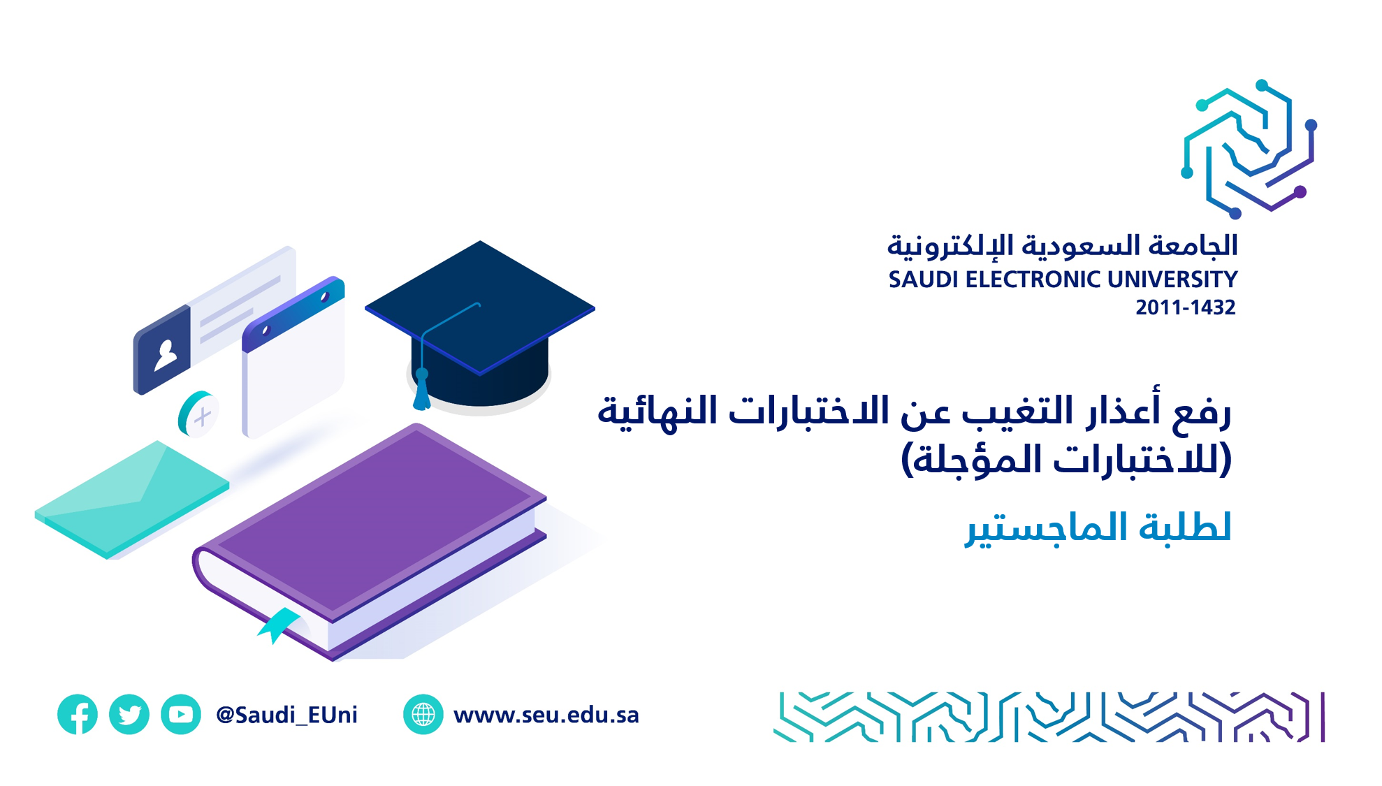 تعلن عمادة الدراسات العليا عن موعد رفع أعذار التغيب عن الاختبارات النهائية لطلبة الماجستير للفصل الدراسي الأول من العام الجامعي 1444هـ.