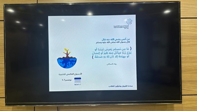 قام فرع جازان بالتعاون مع عمادة القبول وشؤون الطلاب بالمساهمة في الايام العالمية من خلال تقديم منشورات تثقيفية وتدريبية وتوعوية وعرضها على شاشات الجامعة حتى يكون هناك وعي وتثقيف لطلبة الجامعة
