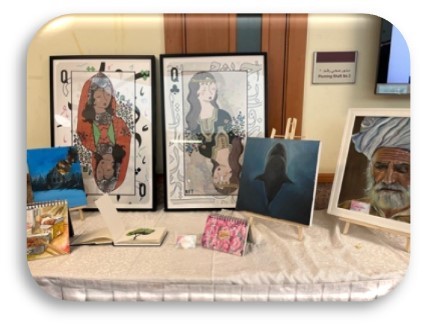 In cooperation with students’ activities unit, the activities’ committee of English language and Translation department organized an Art Gallery, with the attendance of the head of the department, Dr. Mariam Abdulmalik.