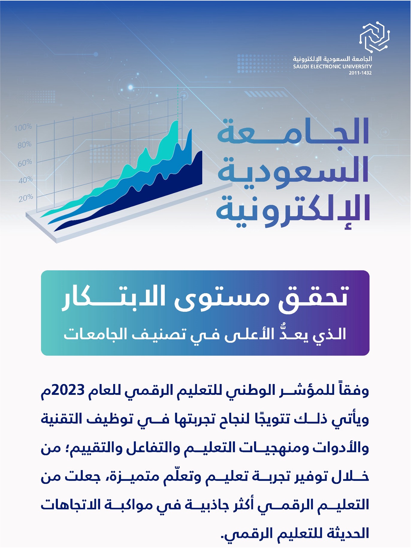 The graduates of the Saudi Electronic University achieved a high rate in the employment indicator for Saudi graduates from public universities. A report from the National Labor Observatory stated that 60% of graduates were able to secure employment in the private sector, while 23% found jobs in the government sector, totaling 83% of all graduates. The university ranked second in the employment indicator and has the highest average salaries for its graduates, according to the report from the National Labor Observatory (Hadaf).