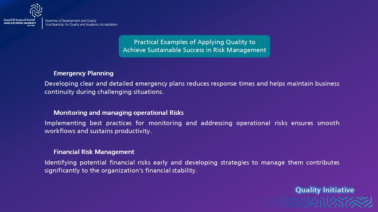 Practical Examples of Applying Quality to Achieve Sustainable Success in Risk Management |