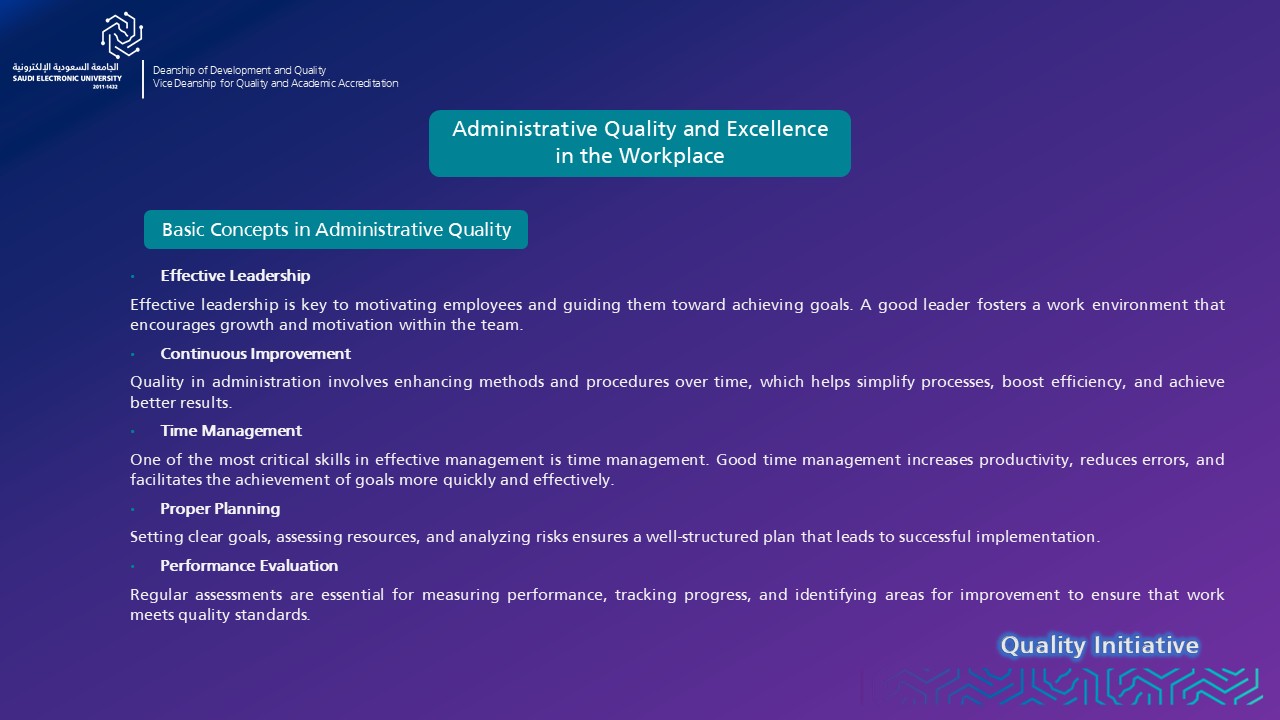 Administrative Quality and Excellence in the Workplace- Concepts |